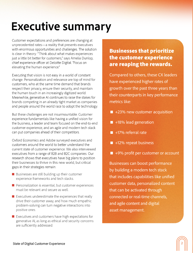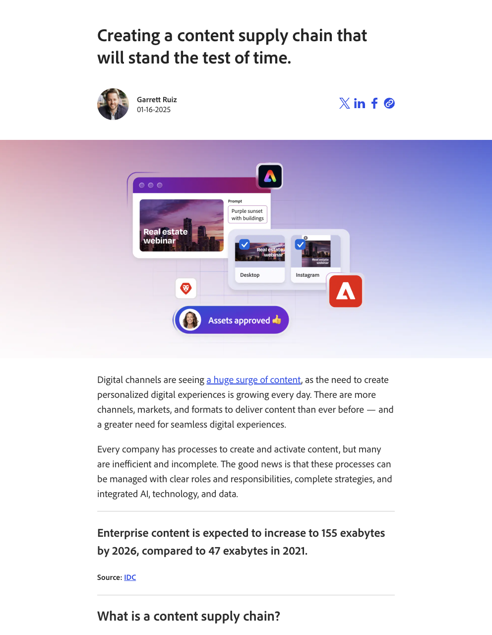 At Adobe working on the content strategy team collaborated with the web team to build out new web pages for all Adobe for Business products. I was responsible for and involved with developing the copy for Content Supply Chain and Commerce web pages. I also ghostwrote a Content Supply Chain thought leadership blog that still drives a high level of organic traffic and I also ran the initial State of CX Research Report in 2023.